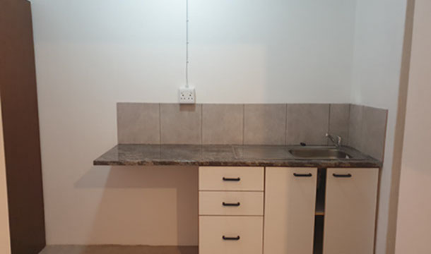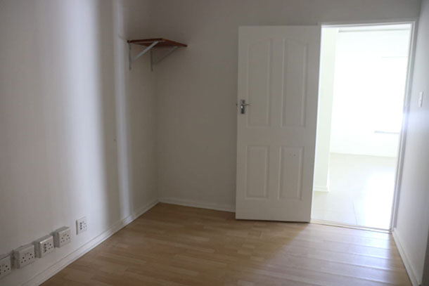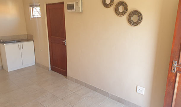 Bachelor flatlet with built-in cupboards, kitchen and bathroom. Secured, enclosed parking for 2 cars. Max 2 persons.