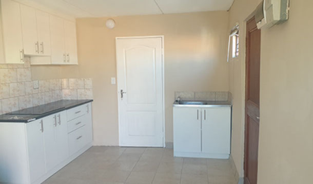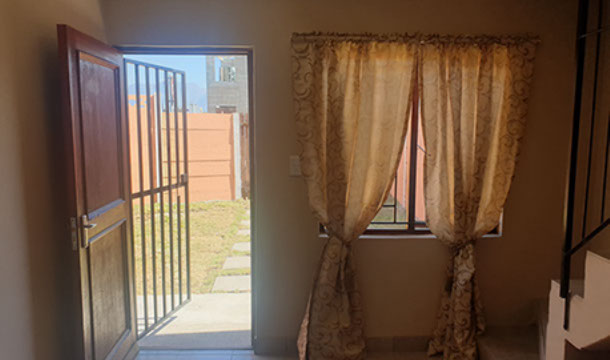 Ideal starter home - ready to move in. Home has 2 neat tiled bedrooms, open plan lounge, kitchen with built-in cupboards/hob/extractor. Bathroom has shower and is fully tiled wall to wall. An entertainment room with own entrance, can be made to 3rd bedroom or even flatlet. Secure, enclosed parking for 4 cars. Loads of space to extend the house. Close to public trans port, schools, hospitals and shops.